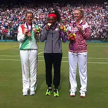نفرات برتر تنیس زنان - از چپ به راست، ویکتوریا آزارنکا (برنز)-سرنا ویلیامز (طلا)-ماریا شاراپووا (نقره)