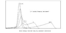 در اینجا فرکانس نوسان پلاسما و چگالی الکترون است. بعدها نیکو ون کپن ثابت کرد که همان نتیجه را میتوان با تبدیل فوریه بدست آورد.[11] او نشان داد که معادلات Vlasov-Poisson خطی شده دارای یک طیف پیوسته از مدهای تکین طبیعی است که در حال حاضر به عنوان مدهای ون کپن شناخته میشود. که در آن ارزش اصلی را نشان میدهد، تابع دلتا (مشاهده تابع تعمیم یافته) است و گذردهی پلاسما است. او با تجزیهٔ اختلال اولیه دراین مدها طیف فوریه موج بوجود آمده را به دست آورد. جذب، توسط ترکیب فاز این مدهای فوریه با اختلاف فرکانسهای کم در نزدیکی توضیح داده شدهاست. معلوم نیست که چگونه میرایی میتواند در یک پلاسما غیربرخوردی رخ دهد: انرژی موج کجا میرود؟ در نظریه سیالی، که در آن پلاسما به عنوان یک ماده دی الکتریک پراکنده مدلسازی شدهاست،[12] انرژی امواج لانگمویر اینگونه است: انرژی میدان ضربدر فاکتور بریلوئین . اما جذب در این مدل نمیتواند مقداردهی شود. برای محاسبه تبادل انرژی موج با الکترونهای نوسانی، تئوری پلاسما ولاسوو باید به درجه دوم گسترش یابد و مشکلات مربوط به شرایط اولیه مناسب و شرایط عمومی رخ میدهد.