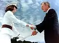 در حال اعطای درجه نظامی به یکی از فارغالتحصیلان زن مدرسه نظامی وست پوینت - سال ۱۹۹۱