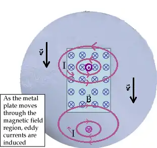 هنگامی که یک رسانا در یک میدان مغناطیسی خارجی حرکت میکند (یا منبع میدان مغناطیسی نسبت به رسانا حرکت میکند)، در اثر پدیدهٔ القای الکترومغناطیسی (طبق قانون القای فارادی)، نیروی محرکه الکتریکی (EMF) در رسانا تولید میشود. ازآنجاییکه رسانا ایده آل نیست، مقداری مقاومت الکتریکی دارد. نیروی محرکه الکتریکی، باعث پدید آمدن جریانهای پراکنده گردشی در رسانا میشود. این جریانها، میدان مغناطیسی پدید میآورند که با تغییرات میدان مغناطیسی اولیه مخالفت میکند (قانون لنز) و از سوی دیگر، انرژی را در مقاومت رسانا به شکل گرما تلف میکنند.