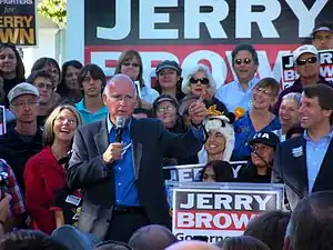 جری براون در تجمع انتخاباتی در ۳۱ اکتبر ۲۰۱۰، دو روز قبل از انتخابات، ساکرامنتو