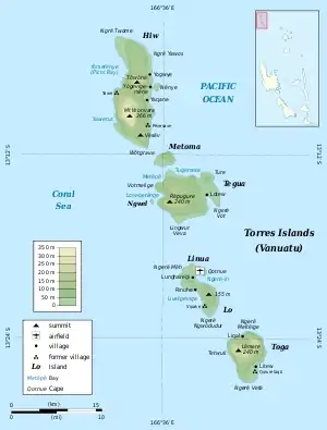 - مشارکتکنندگان ویکیپدیا. «Torres Islands». در دانشنامهٔ ویکیپدیای انگلیسی، بازبینیشده در ۱ اکتبر ۲۰۱۶.
