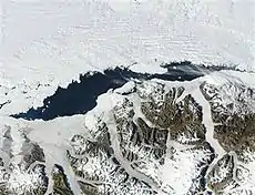 نگارهای ماهوارهای که جدا شدن یختاق آیلز را نشان میدهد