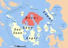 ![]() Location of Orcas Island in the San Juan Islands | |