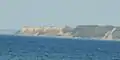 The dramatic southern coast. The yellowish rather than white colour of the cliffs indicates more sand than chalk.