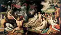 نقاشان برجستهای در دورهٔ رنسانس ایتالیا و سپس در کشورهای سفلی آثاری در سبک مَنِریسم با این مزمون خلق کردهاند. پرداختن به اسطورهشناسی یونان بین بسیاری از نقاشان به دلیل امکان نشاندادن گستردهٔ برهنگی دارای محبوبیت بود.[1]