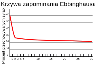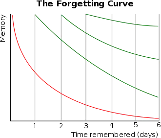 ابینگ هاووس نشان داد ۲۰ دقیقه پس از حفظ کردن تعدادی واجهای بیمعنا ۸۰٪ آنها فراموش میشوند و بقیه هرگز فراموش نمیشوند. ضمناً سرعت فراموشی ابتدا سریع است و به مرور کند میشود و وقتی ۲۰٪ مطالب در خاطر ماند صفر میشود. ضمن این که مرور مطالب قبلاً حفظشده باعث کاهش این سرعت به نصف و حتی بهتر از آن (در صورت خوب حفظ کردن) میگردد. = لذا اگر معنی لغتهای زبان خارجی را که چندان هم بیمعنا نیستند حفظ کنیم، این روند فراموشی بیش از یک روز طول میکشد و با پنج بار مرور موفّق به مقدار ناچیزی میرسد و در صورت کاربردی بودن، مادامالعمر در ذهن خواهد ماند.