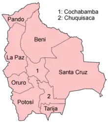 بولیوی به نه استان، یا در زبان اسپانیایی «دپارتمنتوس» تقسیم شدهاست: