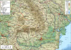 کوههای کارپات، رومانی را به سه منطقه تقسیم میکنند: در شمال غربی ترانسیلوانیا، در جنوب والاچیا، در و شرق مولدووا. در امتداد ساحل، در شرق دانوب، دوبروجا واقع شدهاست. جنوب رومانی عمدتاً از دو دشت اصلی «کامپا رومانا» (دشت رومانی)، و دشت دانوب سفلی تشکیل شدهاست. در میانه کشور یعنی در ترانسیلوانیا زمینهای مرتفعی به حالت فلات قرار دارند.
