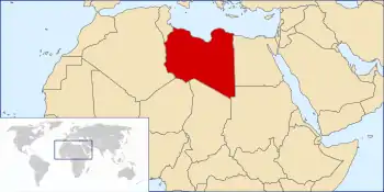 کشور لیبی از دید پهناوری چهارم کشور در آفریقا و هفدهمین در جهان است. لیبی بر کرانه دریای مدیترانه بین مصر و تونس واقع شده و با نیجر و چاد از جنوب و سودان از جنوب شرقی هممرز است.