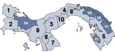 پاناما به ۹ استان (provincias) و پنج قلمرو (comarcas) تقسیم شدهاست. در پنج قلمروی خودگردان، مدیریت در دست چهار گروه قومی سرخپوستی کونا، نگوبه بوگله، امبرا، و وونان است: