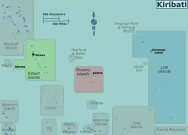 - مشارکتکنندگان ویکیپدیا. «Geography of Kiribati». در دانشنامهٔ ویکیپدیای انگلیسی، بازبینیشده در ۱۵ اوت ۲۰۲۰.