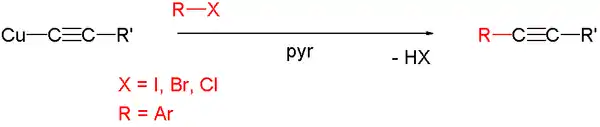 - The Substitution of Aryl Iodides with Cuprous Acetylides. A Synthesis of Tolanes and Heterocyclics R. D. Stephens and C. E. Castro Journal of Organic Chemistry; 1963; 28(12); pp 3313–15; doi:10.1021/jo01047a008