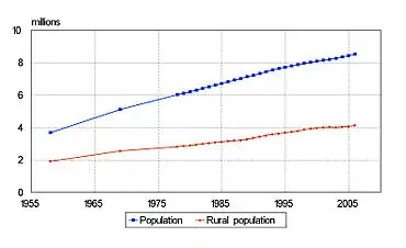 Azerbaijan: آذربایجان: جمعیت و جمعیت روستایی ۱۹۵۸–۲۰۰۶ (میلیونها نفر). کمیته آماری آذربایجان، کتابهای سالهای مختلف.