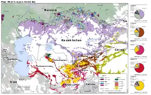 - مشارکتکنندگان ویکیپدیا. «Ethnic demography of Kazakhstan». در دانشنامهٔ ویکیپدیای انگلیسی، بازبینیشده در ۱۳ دسامبر ۲۰۱۸.
