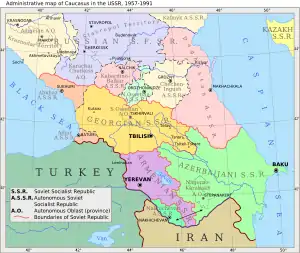 از ۱۹۲۲ تا ۱۹۳۶، این کشور بخشی از جمهوری سوسیالیستی ماورای قفقاز شوروی بود و مانند گرجستان و ارمنستان، دچار گسترش شهرنشینی شد و با پیشرفتهای گسترده اقتصادی، صنعتی شد. شهرنشینی، آموزش و پرورش و پویایی اجتماعی در جمهوری آذربایجان موجب بروز تضادهای اجتماعی بین کلانشهر باکو، و مناطق سنتی عقب مانده روستایی گردید. در این جمهوری آموزش به زبان آذربایجانی بود و مقامات مهم اجرایی آذربایجانی بودند. اما به ویژه در دوره حکومت استالین (۱۹۲۸–۱۹۵۳م) و رهبری باقروف بر حزب کمونیست آذربایجان، این جمهوری شدیداً تحت سیطره مسکو بود. پس از مرگ وی استقلال این جمهوری بیشتر شد و فرصتهای بیشتری برای رشد نخبگان سیاسی و فکری این کشور فراهم شد. این نخبگان در هنگام بروز نزاع با ارمنیان قره باغ، در فوریه ۱۹۸۸، در بین رهبران جبههٔ خلق آذربایجان (اپوزیسیون)، و هم مخالفان کمونیستشان حضور داشتند. در سالهای ۱۹۸۸ و ۱۹۹۰، خشونت ضد ارمنیان به ترتیب در سومقائیت، و باکو بروز کرد و نتیجتاً در ۱۹۹۰ حکومت مسکو دست به عملیات نظامی علیه جمهوری آذربایجان زد.[44]