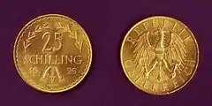 یک ۲۵ شلینگی درج شده در زمان جمهوری اول اتریش