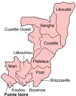 | پایتخت و بزرگترین شهر | برازاویل ۴°۱۶′ جنوبی ۱۵°۱۷′ شرقی |