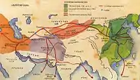 | قفقازیها هندواروپاییها بوداییها تخار و ایرانیان شرقی ساکا (پادشاهی ختن) | منگولیدها بوداییهای ترک تبار اویغورها (پادشاهی کوچو) | منگولیدها قارلوقهای مسلمان ترک تبار (آل افراسیاب) | ||||||
