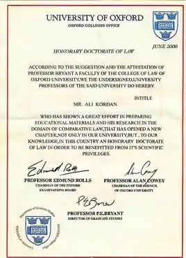 نشریه گاردین در اینباره نوشت: پروفسور ادموند رولز و پروفسور پیتر بریانت و پروفسور آلن کوی که در ذیل مدرک کردان از آنها نام برده شده با این که در دانشگاه آکسفورد دارای مقام بودهاند ولی هیچکدام از آنها در زمینه قانون کار نکردهاند و هیچ کدامشان این مدرک را امضا نکردهاند.[12]
