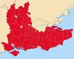 | ۱۳. ساری | a) Spelthorne, b) Runnymede, c) Surrey Heath, d) Woking, e) Elmbridge, f) Guildford, g) Waverley, h) Mole Valley, i) اپسوم اند اول، j) Reigate and Banstead, k) Tandridge | ||