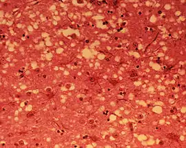 بیماری جنون گاوی یک بیماری کشنده و دژنراتیو عصبی مغزی قابل انتقال در گاو میباشد که یک هفته تا چند ماه پس از بروز نشانهها بالینی و آغاز مراحل پیشرفته بیماری مایه مرگ گاو میشود. نشانهها بالینی این بیماری دربرگیرنده تغییر رفتار (لگد زدن، عدم همکاری با دامدار، تهاجم) کاهش وزن و بروز رفتارهای عصبی میباشد. میانگین زمانی میان آلودگی دام تا بروز نشانهها بالینی حداکثر تا پنج سال میباشد. همچنین تشابهاتی میان جنون گاوی و بیماری کورو در انسان هست. این بیماری در ابتدا در گربه سانان اثر نداشت ولی بر اثر مصرف گوشت آلوده توسط گربهها بعد از مدتی جهش کرد و نوع جدیدی را که هم بر گاو هم گربه سانان اثر میکرد به وجود آمد. الان خطر این وجود دارد که با جهش دیگر به گونههای دیگر نیز انتقال پیدا کند