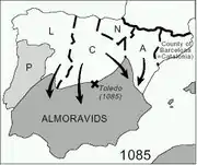 در سال ۱۰۹۵ م. زمانی که مسیحیان اروپایی به آغاز جنگهای صلیبی تشویق میشدند، شاهزادگان اروپایی به مدت یک قرن با موفقیتهای روزافزون در حال جنگ با مسلمانان در شبهجزیرهٔ ایبری و بیرون راندن آنان بودند. برتری پادشاهی لئون بر موروها در نبرد تولدو در سال ۱۰۸۵ م. اتفاق مهمی بود که در این دوران افتاد؛ هرچند سقوط آندلس در سالهای آینده به وقوع پیوست. جدایی و تفرقه بین امیران مسلمان دلیل اصلی این شکستها بود.[14]