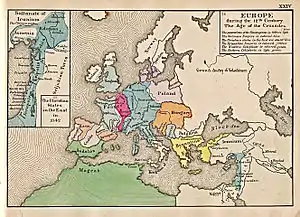 - «Encyclopaedia Britannica». ص. The weakened Byzantine Empire called on fellow Christians in Western Europe to come to their aid, an appeal that led eventually to the mounting of the First Crusade.