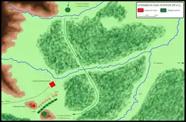 سزار توانست در اوایل اوت به پیشروی خود ادامه دهد و پس از شش روز حرکت بیوقفه، بواسطه دیدهبانان (طلایهداران یا پیشاهنگان) مطلع شد که ارتش آریوویستوس در حدود ۲۴ مایلی (کمی بیش از ۳۵ کیلومتری) آنان است.[42] آریوویستوس با آگاهی از فرارسیدن سزار تصمیم گرفت سفیران خود را بفرستد تا به ژنرال رومی بگوید که آماده مذاکره است، تا او را پس از پنج روز متوقف نماید. سزار پیشنهاد را رد ننمود و میپنداشت که آریوویستوس [شاید] از تصمیم خود [مبنیبر گذر از راین] منصرف شود. با اینحال مذاکرهای که پیشآمد بیحاصل بود. در حقیقت بهنظر میآید که در حالیکه گفتگوها در حال انجام بودند، برخی سواران ژرمنی به تپه نزدیک شده، در برابر رومیان بهراه افتاده و سنگ و دیگر پرتابهها بهسوی آنان پرت کردند؛ سزار گفتگو را برهم زد و بازگشت.[43][یادداشت 32] شکست ملاقات، جدالی سهمگین را سبب شد که در پای کوه ووژ (امروزه میان شهرهای مولوز و کرنای) بهوقوع پیوست.