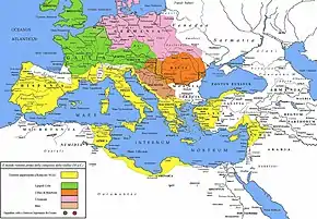 - اول از همه اینکه هلوتیها میخواستند در قلمرو سانتونیها[یادداشت 20] اسکان یابند که چندان از قلمرو تولوساتیها[یادداشت 21] که شهرشان در استان واقع بود، دور نبود؛ و این امر خطراتی سنگین برای سرتاسر استان گالیا ناربوننسیس و حتّی استان همسایهاش تاراکوننسیس در برمیداشت.[18]