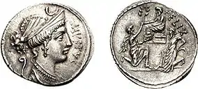 ![]() سکهای ضربشده در حدود ۵۶ قبل از میلاد که در سمت راست ژوگورتای مغلوب را در حالیکه در برابر سولا زانو زدهاست، ترسیم نمودهاست. | |||||||