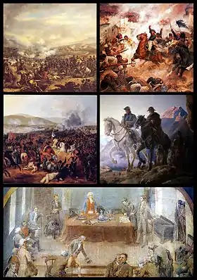 ![]() از بالا چپ: نبرد ال رابل، نبرد رنکاگائو، نبرد Maipú، عبور از آند، نخستن دولتJunta | |||||||
