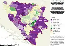 اما مسلمانان بوسنیایی خواستار جدایی از یوگسلاوی سابق بودند. در چنین حالی صربهای ساکن بوسنی با این اقدام مخالفت کرده و به سرکوب مسلمانان پرداختند. این حادثه یکی از فجیعترین حوادث تاریخی بهشمار میرود که به نسلکشی، قتلعام و کشتار گروهی اقوام مختلف بوسنی انجامید. در شهر سارایوو پایتخت بوسنی و هرزگوین هزاران نفر کشته شدند. ترتیبات سیاسی بهجا مانده از توافق صلح دیتون در سال ۱۹۹۵ به درگیریها خاتمه داد. اما این توافقات اختلافات ناشی از ایدئولوژیهای ملیگرایانه مسلمانان را که جنگ بهخاطر آنها آغاز شد، التیام نبخشیدهاست. همچنین این توافق، کنترل قدری کمتر از نیمی از کشور و امکان وتوی سیاستهای ملی در بوسنی و هرزگوین را در اختیارشان گذاشت، که این امر جلوی توسعه اقتصاد بوسنی را گرفته و زمینه را برای رواج فساد مالی و اداری فراهم کردهاست.[8]