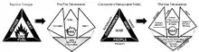 اخیراً مثلث آتش با «چهاروجهی آتش» جایگزین شدهاست که مدل مناسبتری است. چراکه مثلث آتش نمیتواند واکنش شیمیایی اشتعال را در نظر بگیرید. با استفاده از این مدل بهعنوان یک مبنا، اجزاء مثلث سهگانه اصلی کلاوزویتس را میتوان کمی تغییر داد تا اجزاء جنگ را به این شکل نشان داد: منافع استراتژیک (حکومت)، خشونت سازماندهی شده (نظامی)، اقدامات و تصمیمات اجتماعی (مردم).