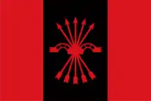 اسپانیا در نوامبر ۱۹۳۸، رنگ آبی بخشهای زیر پرچم ملیگراها و رنگ سرخ بخشهای زیر فرمان جمهوریخواهان را نشان میدهد.
