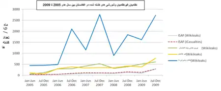 - "OEF: Afghanistan: Fatalities By Year". iCasualties. 2005-09-09. Retrieved ۲۰۱۰-۰۸-۲۴.