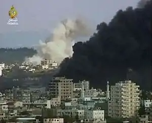 ![]() دود برخاسته از بمباران، غزه، ۹ ژانویه ۲۰۰۹ | |||||||||||