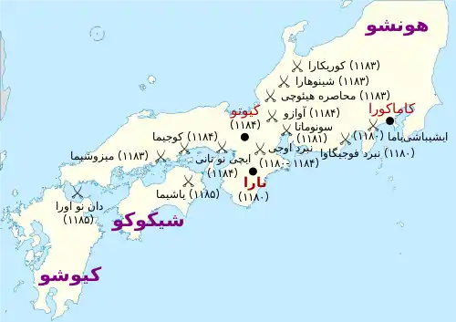 - ۱۱۸۳ نبرد شینوهارا – ۲۲ ژوئن، تصرف پایتخت توسط میناموتو نو یوشیناکا