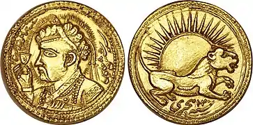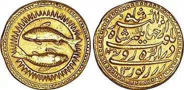 سکه جهانگیر شاه با نقش خورشید در برج حوت؛ ۱۰۲۸ هجری