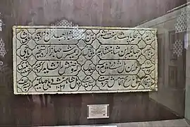 سنگ مرمر با شعر چهار بیتی فارسی که تاریخ ساخت پل سلیمگره به دستور جهانگیر در آن قید شدهاست.