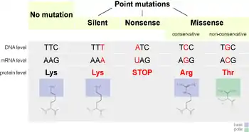 - مشارکتکنندگان ویکیپدیا. «Point mutation». در دانشنامهٔ ویکیپدیای انگلیسی، بازبینیشده در ۲۵ اکتبر ۲۰۱۶.