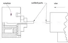 در این نوع جوشکاری سطح دو قطعه که قرار است به هم متصل شوند در تماس باهم قرار میگیرند. یکی از قطعات ثابت است در حالی که قطعه دیگر میچرخد. وقتی سرعت چرخشی به یک مقدار مشخص میرسد، فشار محوری اعمال میشود و گرمایش موضعی در قسمتهایی در فصل مشترک رخ میدهد. سپس چرخش متوقف میشود و مواد گرم شده روی سطح مشترک انباشته میشوند.[4][5]