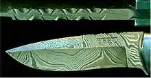 جوشکاری الگوی [1] عمل ساخت شمشیر و چاقو تشکیل یک تیغه از چندین قطعه فلزی از ترکیبات مختلف است که با هم جوش داده می شده و دستکاری شده اند تا یک الگوی منظم ایجاد کنند. اغلب به نام (مدرن) فولاد دمشق ، تیغه های جعلی در این روش اغلب از طول آنها قابل تشخیص است. این نوارها را می توان برای صحنه های زیبایی با پرداخت مناسب یا اچ کردن اسید برجسته کرد . جوشکاری الگوی یک رشد فولاد روکش شده یا پوشیده شده بود ، یک تکنیک مشابه برای ترکیب فولادهای مختلف محتوای کربن ، یک ترکیب مطلوب دارای سختی خوبی بود. اگر چه فرایند تولید فولاد در حال حاضر نیاز به ترکیب فولادهای مختلف را نفی می کند، جوشکاری الگویی فولاد هنوز برای ساخت اثرات زیبا استفاده می شود و برای ان ساقرش داده می شود.
