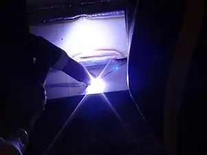 - تماس سیم جوش با الکترود تنگستن داغ.