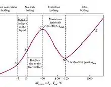 در نقطه D از منحنی جوشش که نقطه لیدنفراست( Leidenfrost)، نامیده میشود، شدت مقدار حرارت حداقل مقدار را داراست وسطح کاملاً با لایه بخار پوشانیده میشود