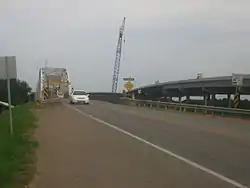 ![]() Motorists used the old Black River پل in Jonesville prior to completion of the new structure to the right. | |