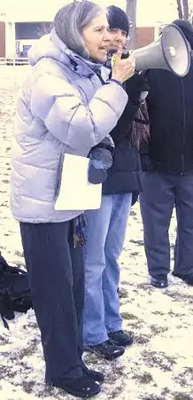 اگر اجازه دهید نقلقولی از آلیس واکر بکنم باید بگویم که «بهترین راه برای اینکه دست مردم را از قدرت کوتاه کنید این است که کاری کنید آنها ندانند که باید با آن شروع کنند.» و این حقیقت دارد، برای جنبش محیط زیست، جنبش دانشجویی، جنبش ضدجنگ، جنبش بهداشتودرمانبهعنوانیکحقانسانی — اگر همهٔ ما کنار هم قرار بگیریم، حتی پتانسیل این را داریم که رویدادی از نوع میدان تحریر ایجاد کنیم و در ماه نوامبر کاخ سفید را به کاخ سبز بدل کنیم.[23]