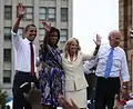به همراه همسرش و میشل و باراک اوباما بعد از اعلام نامزدی برای معاونت ریاست جمهوری، اوت ۲۰۰۸