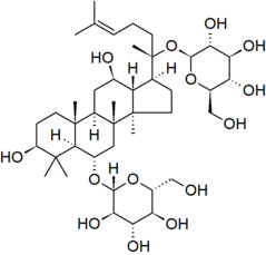 620-Bis(β-D-glucopyranosyl)-(3β6α12β20S)-361220-tetrahydroxydammar-24-ene | |