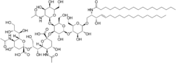(2R4R5S6S)-2-[3-[(2S3S4R6S)-6-[(2S3R4R5S6R)-5-[(2S3R4R5R6R)-3-acetamido-45-dihydroxy-6-(hydroxymethyl)oxan-2-yl]oxy-2-[(2R3S4R5R6R)-45-dihydroxy-2-(hydroxymethyl)-6-[(E)-3-hydroxy-2-(octadecanoylamino)octadec-4-enoxy]oxan-3-yl]oxy-3-hydroxy-6-(hydroxymethyl)oxan-4-yl]oxy-3-amino-6-carboxy-4-hydroxyoxan-2-yl]-23-dihydroxypropoxy]-5-amino-4-hydroxy-6-(123-trihydroxypropyl)oxane-2-carboxylic acid | |